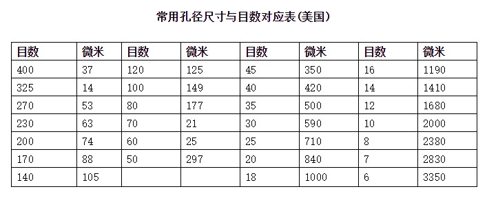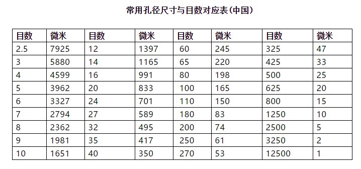 過濾網目數與孔徑參數你了解多少呢,下表一覽全解析!