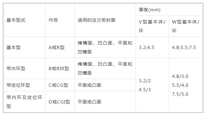 三、纏繞墊片結構形式及代號和使用法蘭類別: