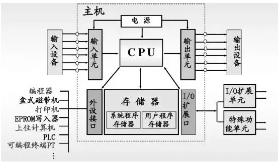 然后還有輸入輸出單元以及I/O擴展接口,這些是負責和外部設備連接的。后還有一個電源模塊,將外部的輸入電源經過處理后,轉化成PLC的CPU、存儲器、輸入輸出接口等內部電路工作所需要的直流電源,例如24V。