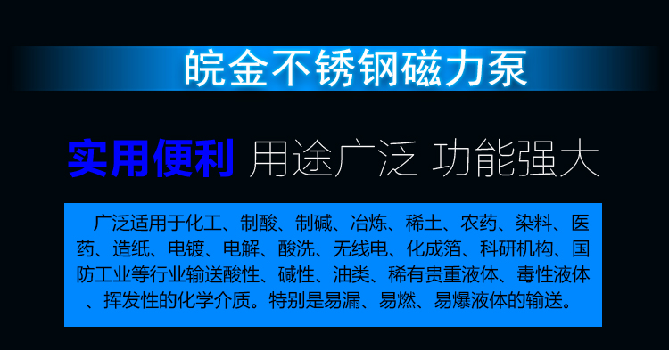 WJC不銹鋼磁力泵適用于石油、化工、冶煉、電鍍、環保、食品、影視洗印、水處理等行業。