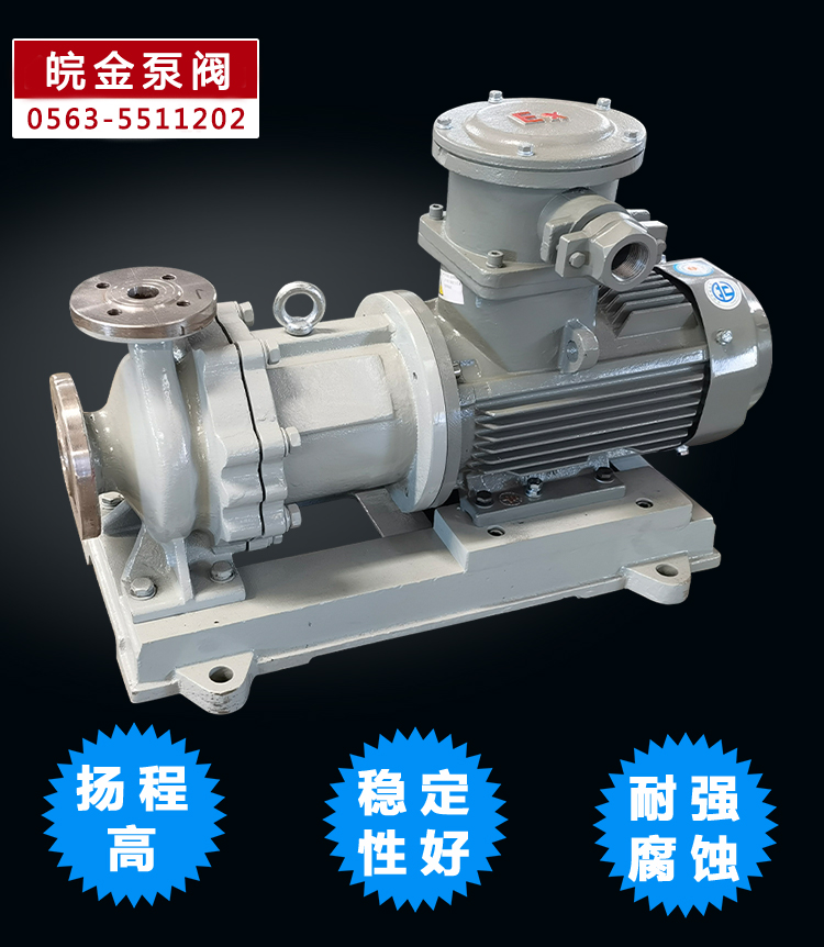 WJC不銹鋼磁力泵過流部件采用全不銹鋼材料(304、316、316L),內、外磁轉子選用高磁能積、高矯頑力的稀土永磁制造,具有高效節能、介質適用面廣、耐高溫、磁性強、不退磁等優點,對有機酸,有機化合物,堿,中性溶液和各種氣體都有良好的耐蝕性,雙螺旋糟碳石墨軸承和硬質合金軸套,具有較強的耐磨性,是應用磁力耦合實現無接觸傳動、無動密封的高品質磁力化工泵。保證了產品的壽命,是不泄漏輸送腐蝕性介質用泵。