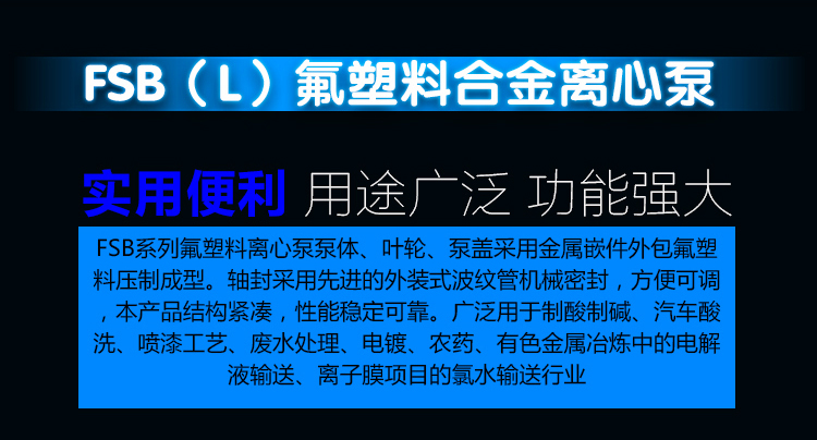 廣泛用于制酸制堿、汽車酸洗、噴漆工藝、廢水處理、電鍍、有色金屬冶煉中的電解液輸送、離子膜項目的氯水輸送行業。