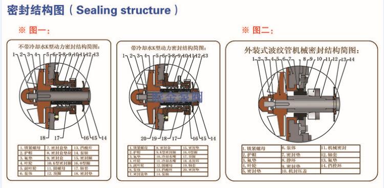 2、優良的耐腐蝕性:該泵在一定溫度和濃度范圍內能耐各種腐蝕性介質(酸、堿、鹽)及有機溶劑,在20℃和90℃的80種有機溶劑中浸漬30d。外表無任何反常現象,其它物理性能也幾乎沒有變化。