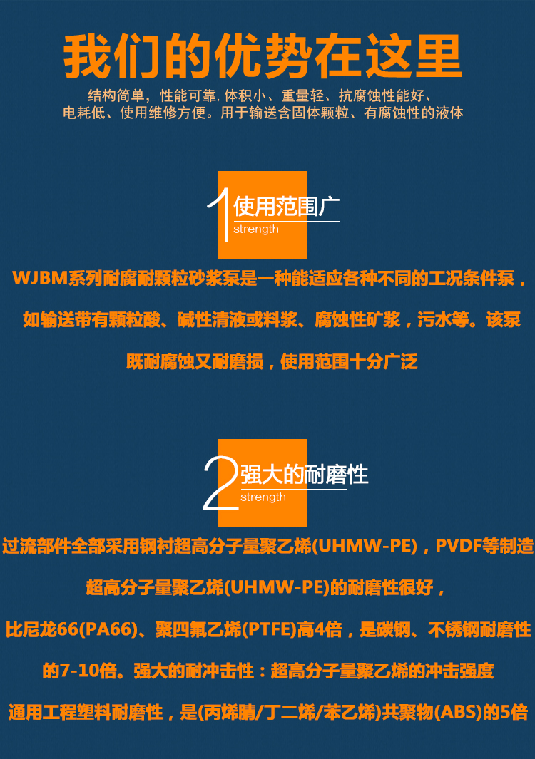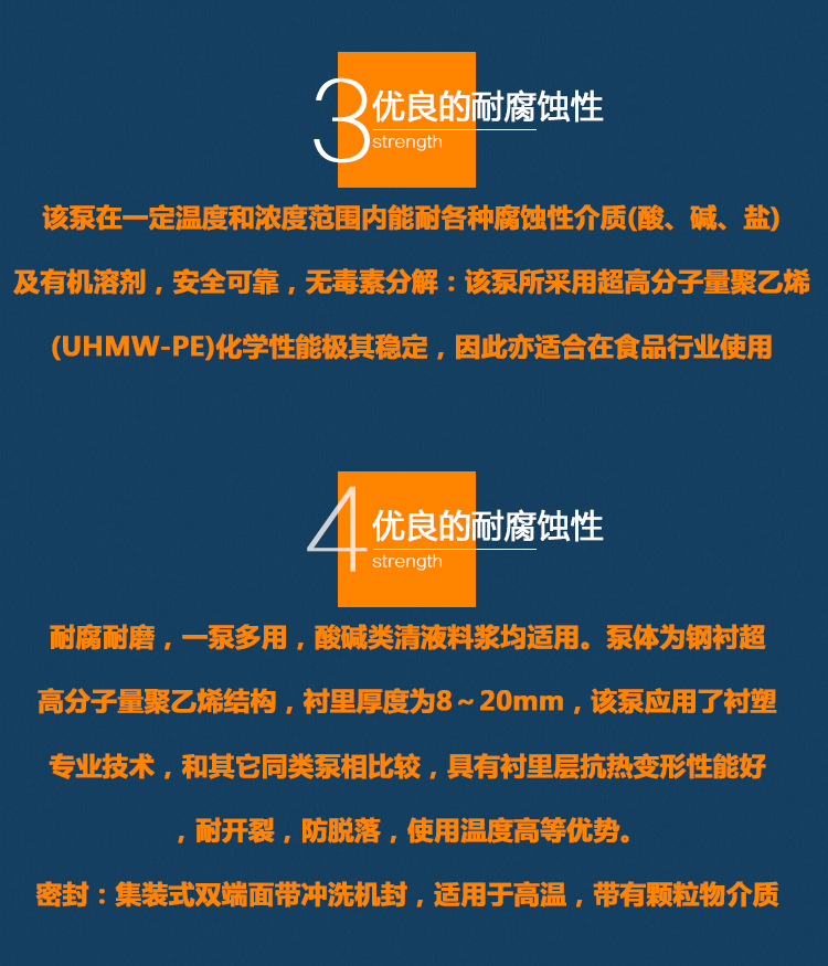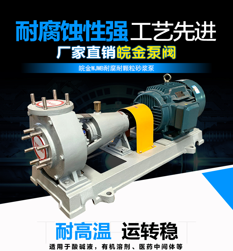 UHB-ZK耐腐耐磨砂漿泵采用半開式葉輪,屬于單級單吸懸臂式離心泵。過流部件全部采用超高分子量聚乙烯襯里制造。適用于清液的抽取也適用與漿料的輸送。