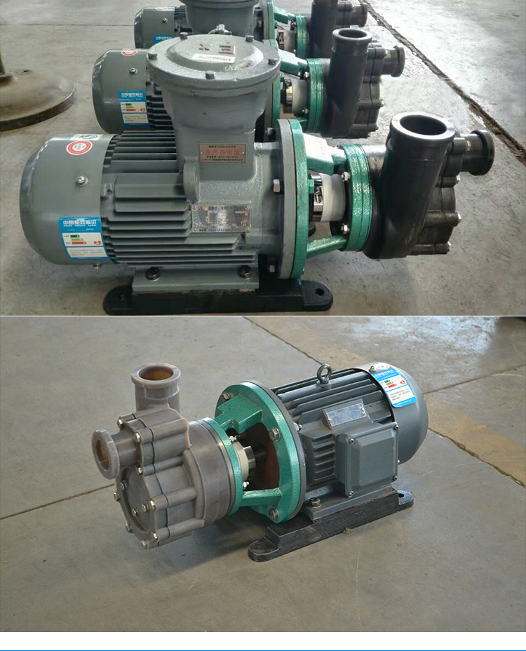 氟塑料磁力泵又稱其為氟塑料磁力離心泵、襯四氟磁力泵、氟塑料磁力驅動泵、耐腐蝕磁力化工泵,CQB-FJ襯氟磁力泵是我公司氟塑料磁力泵中的全新升級款型。氟塑料磁力泵另有:CQB-